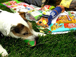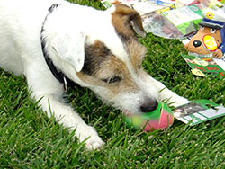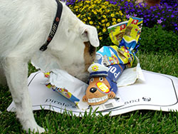 Boahhh, was waren da für wau dolle Spielsachen und quietschis drin und fein gute Leckerchen, wau wuff die reichen mir für die nächsten 5 Jahre.