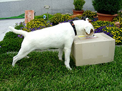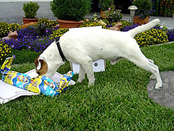 Naklaro musste das Paket sofort beäugt und abgeschleckt werden und meine Spürnase erschnüffelte den föxischen Geruch von Kumpel Rocky – Manolo aus Nürnberg.