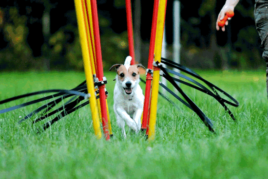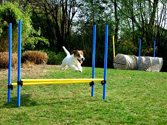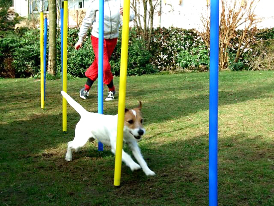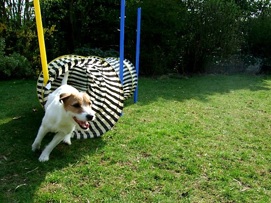 Ich trainiere Agility auch in unserem großen Garten... schließlich will ich mal Meister werden.