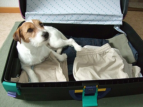 Ist doch klar, dass ich meinen Koffer selber mit meinen Pfoten packe.