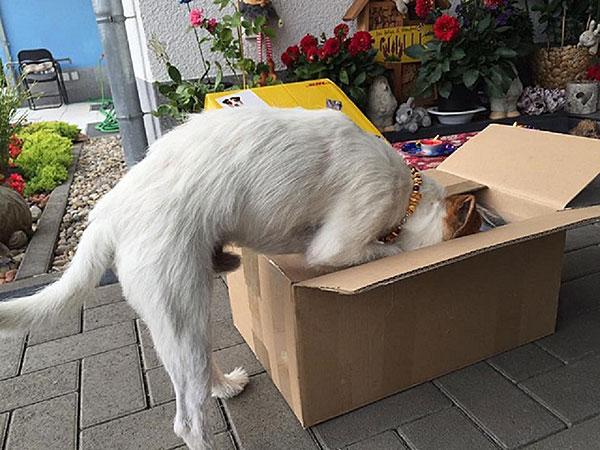 Wuff holdrio was verbell ich denn dazu… so eine tolle Burzelschenki-Kiste vom Rocky und alles für mich… dass, hab´ ich eigenpfotig schön aufgebaut..