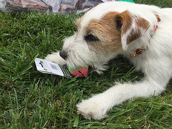 Wuff hurra ein blaues Balli rolle mir direkt vor meine braunen Lunser, während ich noch am Quietschie kaute..