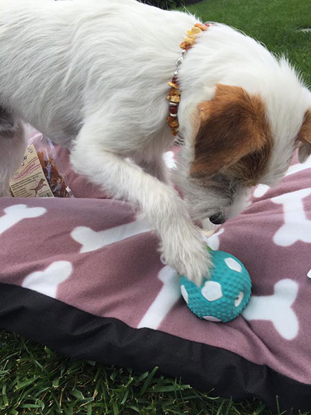 Naklaro wuff, was ich als aller erstes erschnüffelt hab´ war ein blaugrünes Quietschballi, auf dem ich heftigst herum gebissen hab´...