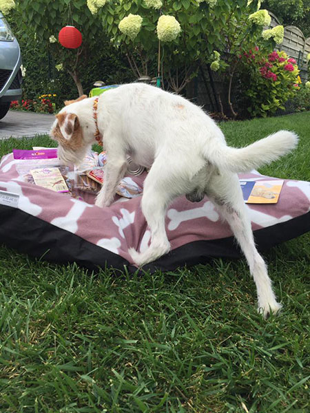 Rauf mit drei Pfoten auf das Knochenkissen und die Schnüffelnase einschalten..