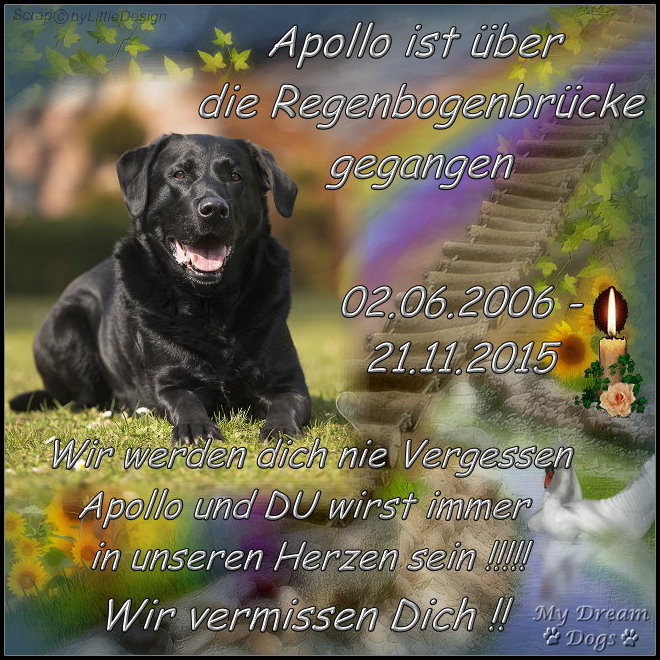 Am 21,11,2015 musste er ins Regenbogenland umziehen und ist jetzt endlich wieder schmerzfrei.